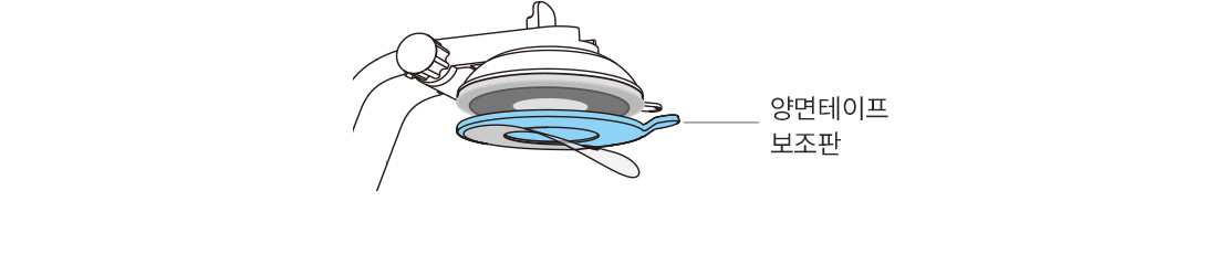• 보조 플레이트를 부착한 경우 양면 테이프에 충분히 접착력이 생길 때 까지 약 2시간동안 제품을 고정하지 마십시오.