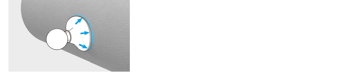 - 거치대의 무게로 쉽게 흔들리거나 변형되기 쉬운 재질(연질 대시보드, 가죽 면, 카페트 면 등) 표면에는 설치할 수 없습니다.